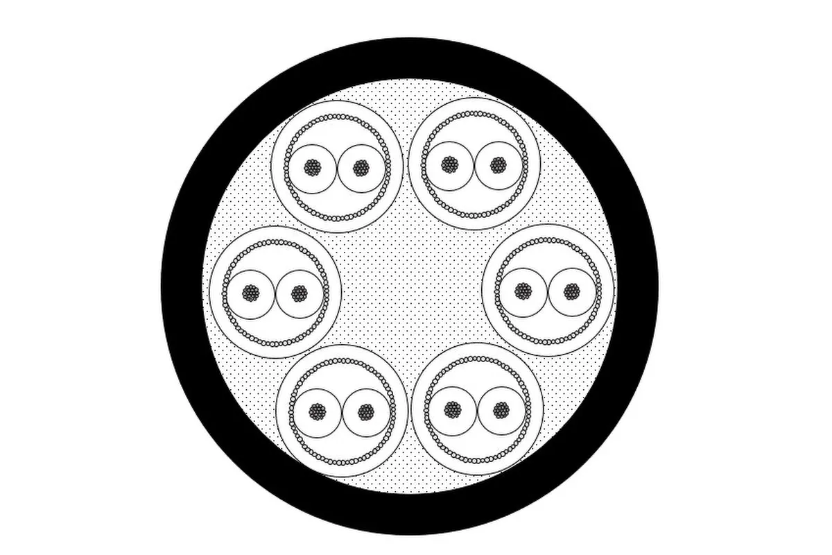 - Sechs symmetrische, einzeln geschirmte und ummantelte Adern